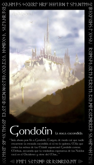 Гондолин был сокрытым королевством эльфов времен Первой Эпохи. Красивым и процветающим городом управлял Тургон на протяжении четырёх столетий, пока его местонахождение не было открыто Морготу племянником Тургона Маэглином. Моргот разрушил Гондолин - последнее из великих царств Белерианда. Но внук Тургона Эарендиль выжил, и именно он убедил Валар пойти на Моргота войной, которая позже стала известна как Война Гнева, случившаяся в конце Первой Эпохи.